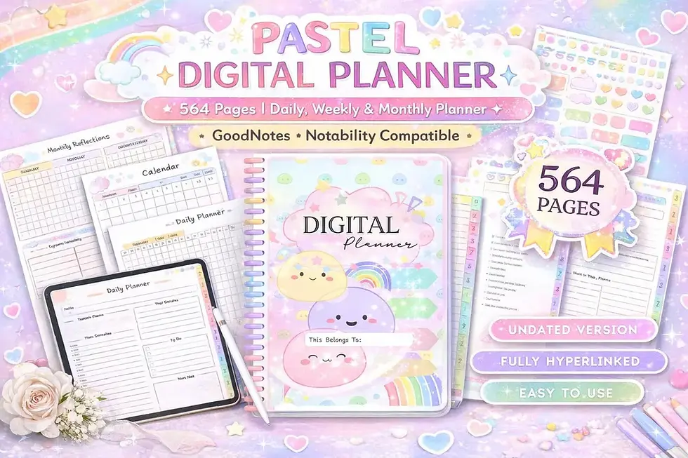 Pastel Kawaii Digital Planner for iPad | 150-Page All-in-One Life Planner | Dail