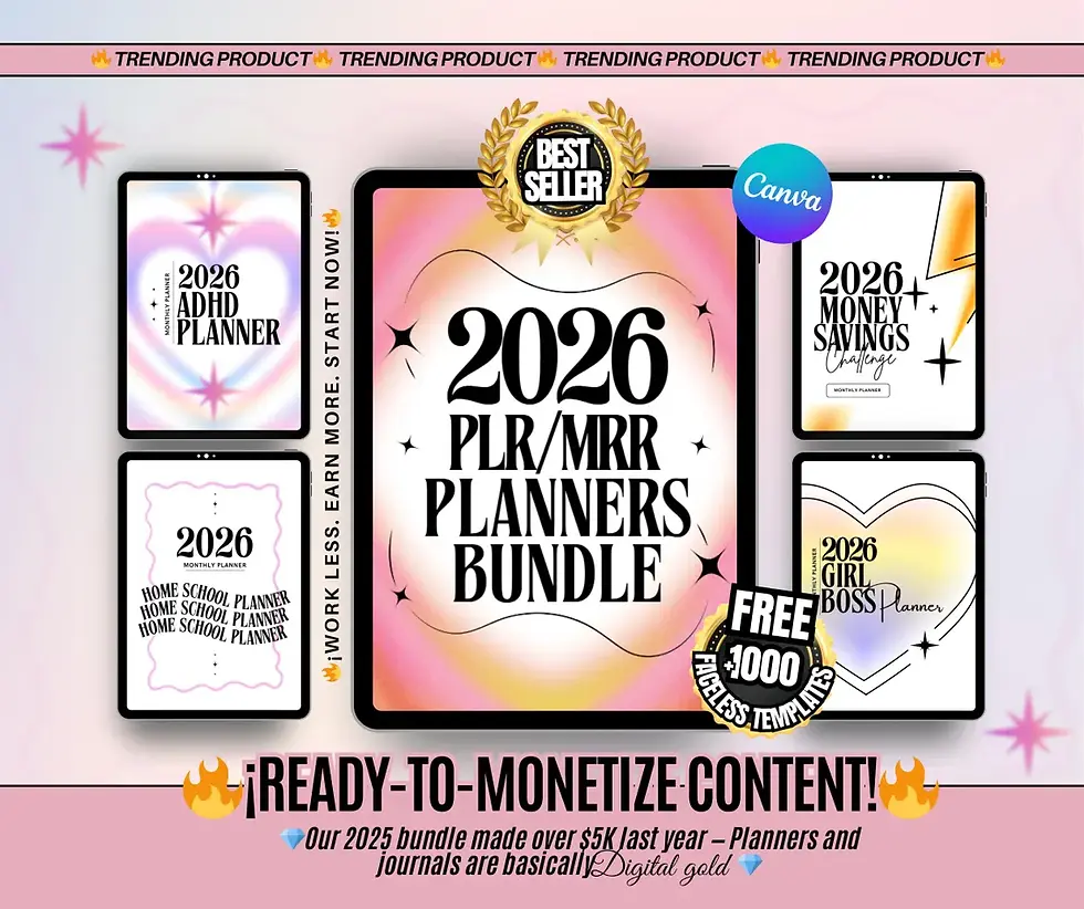 26 Digital Planners Bundle 2026 | PLR & MRR Canva Editable Planners with Resell